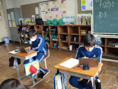 2024年11月1日 11時21分CBT試験のリハーサルを行いました。CBT試験とはコンピュータを使って行う試験です。全国学力テストで行います。4~6年生が説明を聞いて取り組みましたが、すぐに操作に慣れ、次々に答えることができていました。