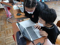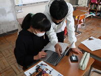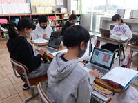 2021年12月3日 12時59分5・6年生が、音楽の学習でプログラミング体験をしました。
