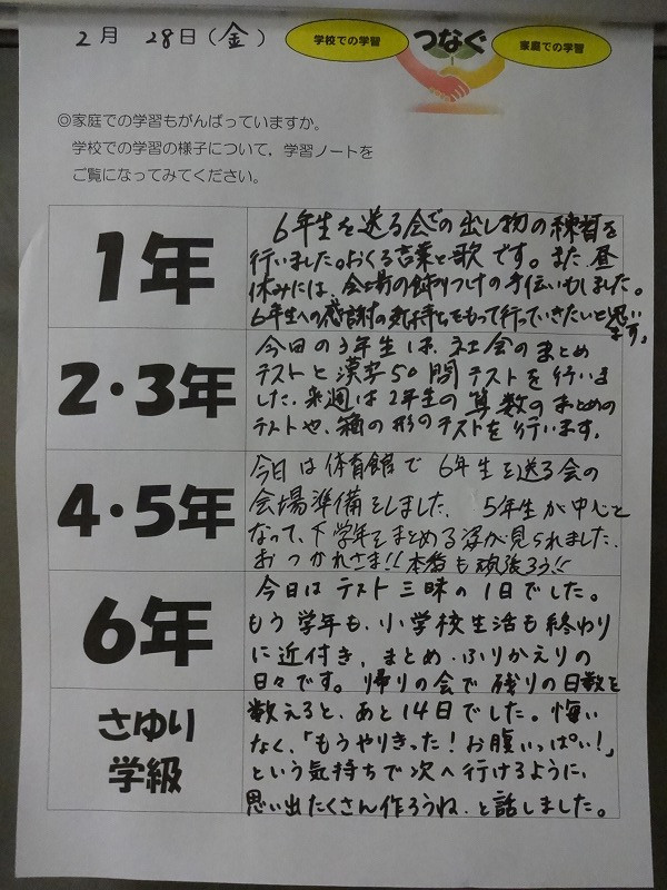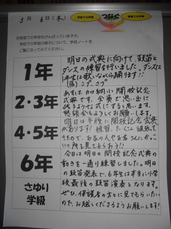 2025年3月6日 16時50分明日は加納小感謝の会です。