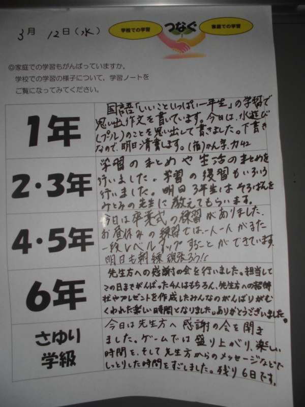 2025年3月12日 17時30分今日は1~5年生が5校時で下校しました。