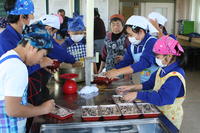 2019年11月13日 10時54分 11月12日(火)に、5.6年生が赤飯配りを行いました。赤飯配りは米作り学習の最後の活動として毎年行っているもので、収穫した餅米を使って赤飯を作り、一人暮らしのお年寄りの皆さんへ届けるという活動です。