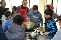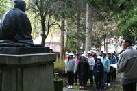 子どもたちは、示現寺の銅像を見学したり水あめを作ったりすることを通して、瓜生岩子刀自の功績について理解を深めていました。