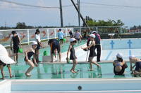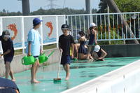 2019年6月6日 17時46分6月4日(火)、全校生でプール清掃を行いました。1年生はプール入り口付近の草むしりや掃除、2年生以上は水着を着てプールサイドや側溝の汚れ落とし、保健・体育委員会は更衣室やトイレの掃除など分担して行いました。あらかじめ職員が高圧洗浄機でプール本体の清掃を行っておいたので、約1時間ほどでプール清掃は終了しました。6月18日(火)にプール開きを行う予定です。