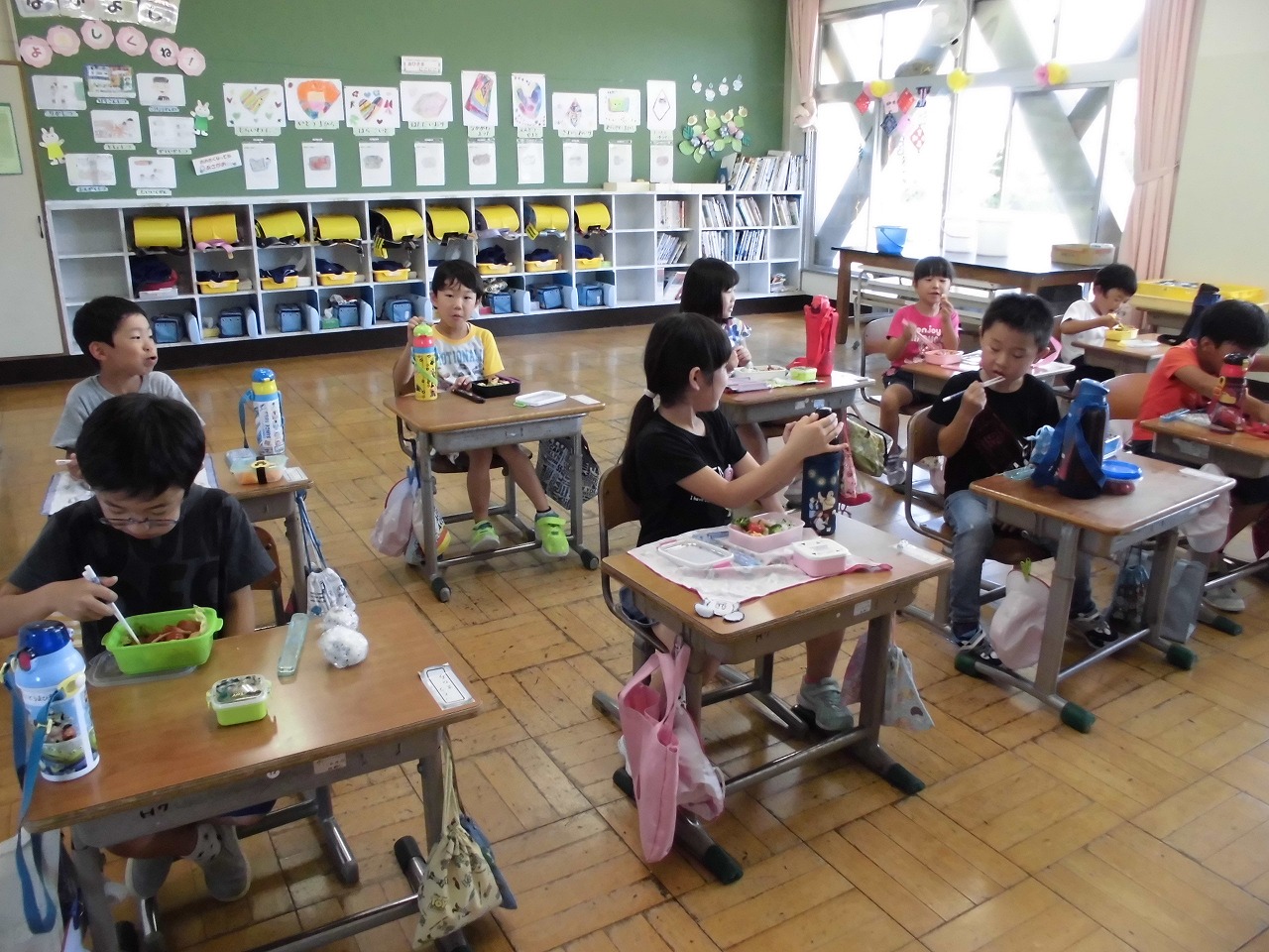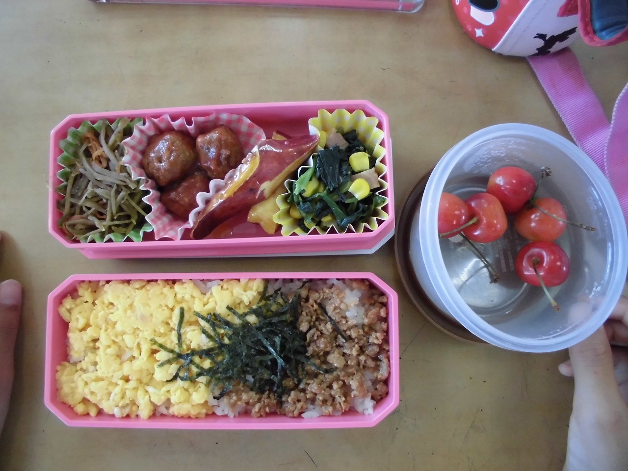 2018年7月3日 11時47分今年度最初のマイ弁当を7月2日に実施しました。お弁当を一緒に作っている親子の会話が聞こえてきそうです。