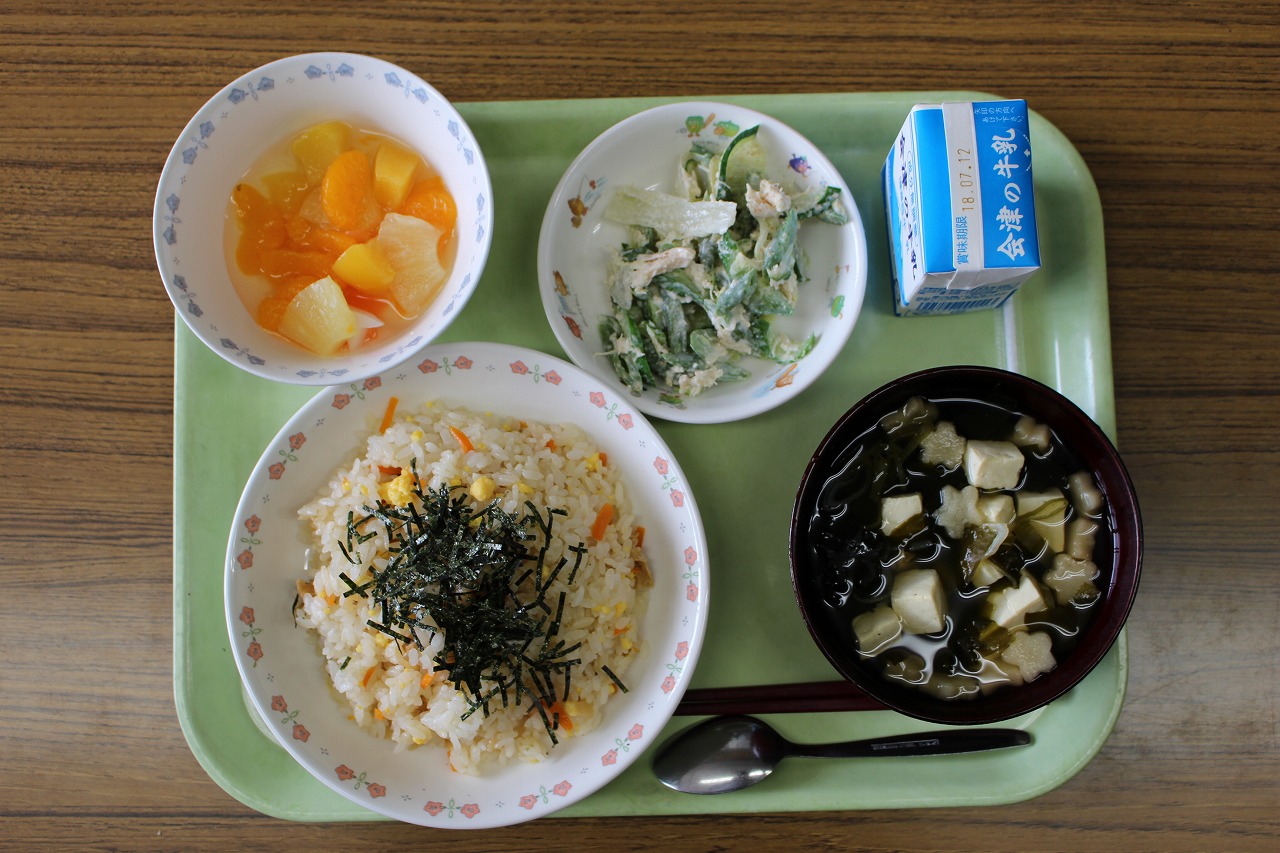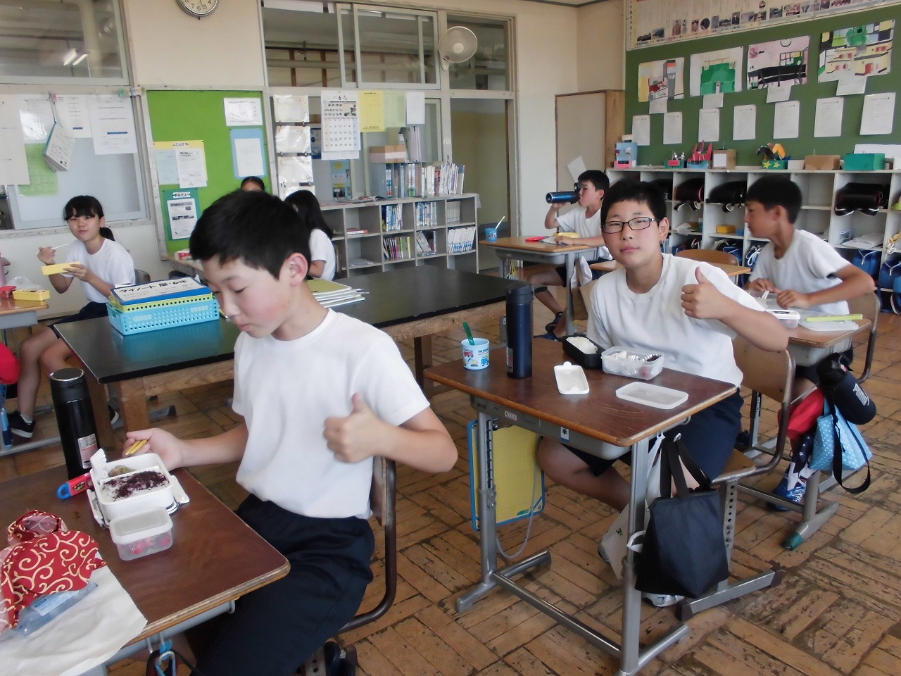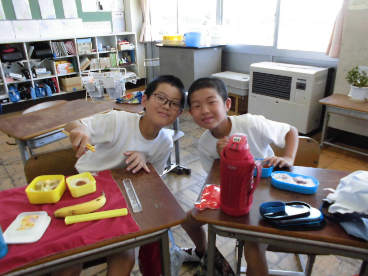 2018年7月5日 12時15分今日は、七夕献立です。元気な子もそうでなかった子も、この給食を食べたら、幸せな気分になりますね。おやっ!