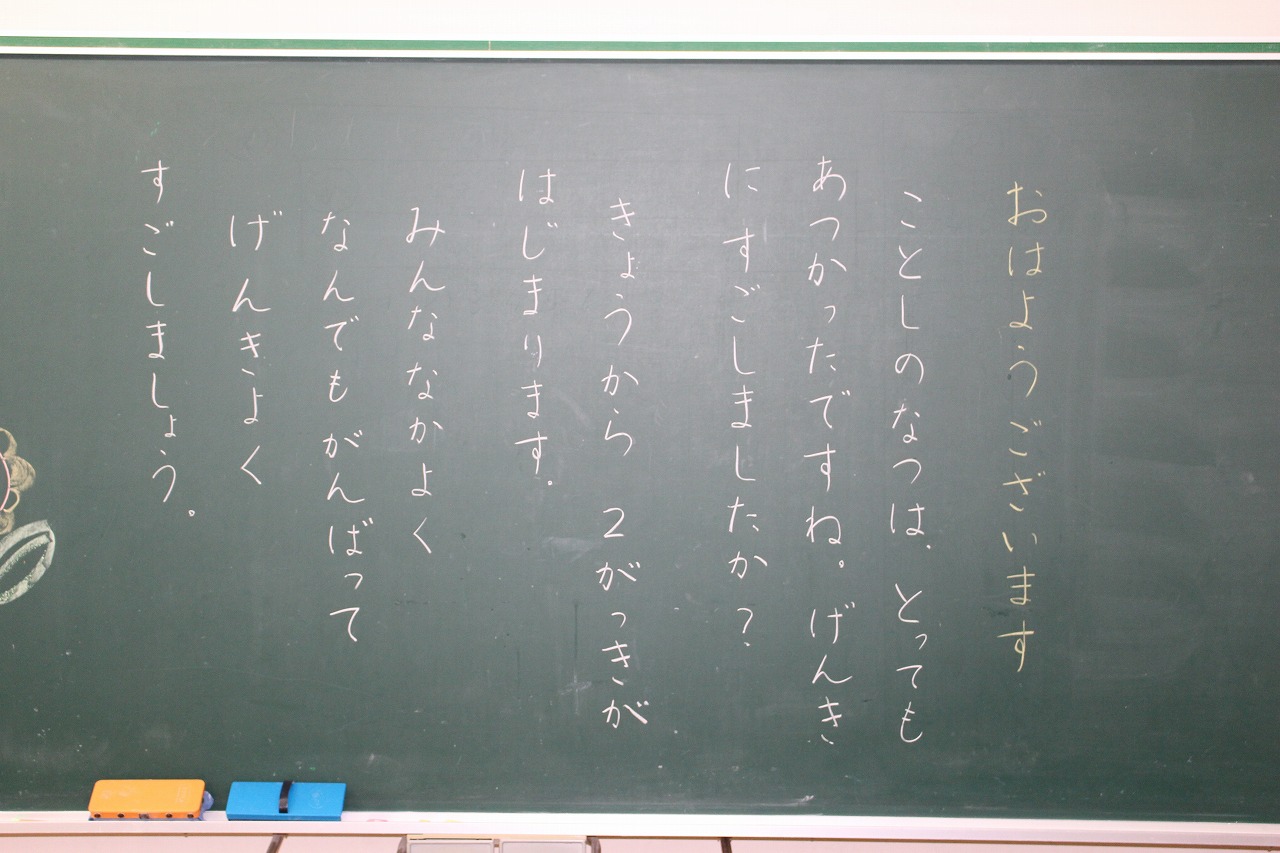 2018年8月27日 14時15分久々に再会した子ども達は、一段とたくましくなっていました。夏休みの感想発表も堂々とできました。先生方も今日を心待ちにしていました。