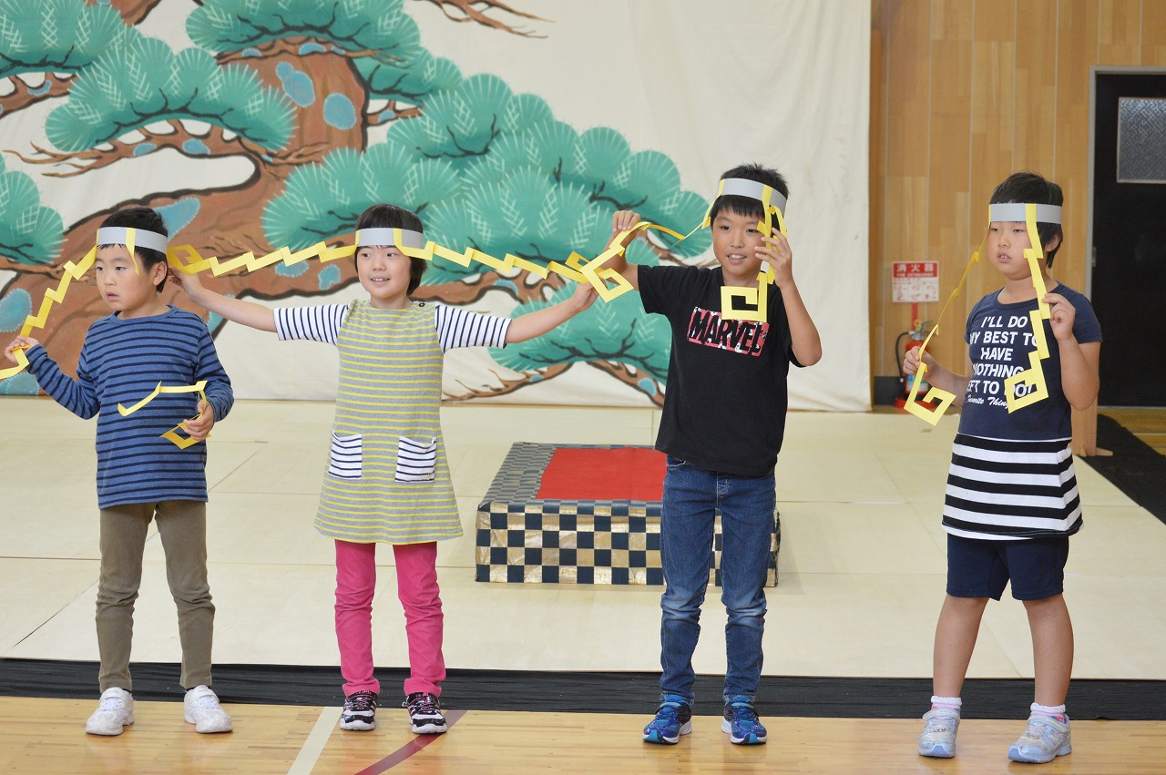2018年9月13日 17時18分9月12日には、加納小学校で、熱塩小学校の全校生といっしょに「能」の鑑賞を行いました。文化芸術による子どもの育成事業の一環として、一流の文化芸術団体の公演を鑑賞する機会に恵まれました。「瓦照苑」(がしょうえん)の方々による能楽鑑賞教室です。