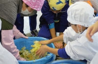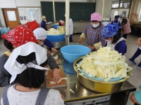 2018年1月19日 09時39分 1月18日の朝、出来上がった白菜などに、秘伝キムチのもとを混ぜ合わせて、本漬けです。