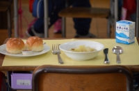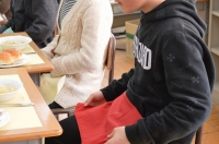 2018年1月31日 14時12分 洋食の食べ方を学ぶ「マナー給食」を6年生が体験しました。食器やスプーン、ナイフとフォークが並ぶと、自然と洋食体験の意気込みが出てくるものです。