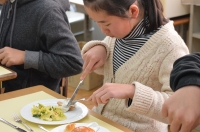 6年生は、緊張しながらフォークとナイフをつかって上手に食べることできました。(スイートコーンをぽろぽろ落とした人もいたようですが・・・・・)