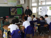 2018年2月7日 11時57分 外国語指導助手カイラ先生のご都合で、今日は、別の小中学校で教えておられているジャスティン先生がお出でになりました。