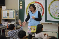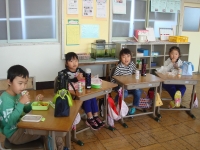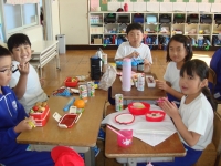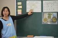 本校では、各学年が学級活動を利用して食育の授業を行っています。今日の2年生のめあては「好き嫌いをなくそう」です。タイトルの「ピーマン・ゴーヤ・にんじん」は、もちろん嫌いなものベスト3です。大人になるまでに大好きになってほしいですね。
