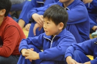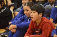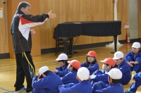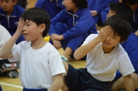 2017年11月28日 11時25分 11月21日、体育専門アドバイザーの矢沢先生にお出でいただき、体育の授業を応援していただきました。1,2年生はボール運動、3~6年生は、マット運動を見ていただきました。