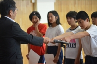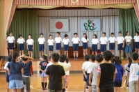 2017年9月25日 11時12分 9月21日、好天に恵まれて18校が集う陸上大会が開催されました。当日前には、5年生が主体となって壮行会が開かれています。また、陸上大会後には全校朝会で表彰式も行われました。