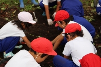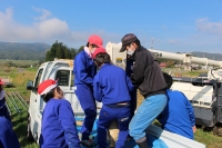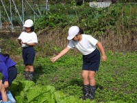 2017年10月5日 12時56分 好天に恵まれた今日、10月5日に3,4年生は、畑の肥料まきを行いました。