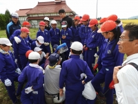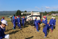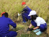 2017年10月5日 13時26分 5,6年生は、田んぼの生物調査と稲刈りを行いました。全農の方の説明を聞き、この田んぼが