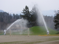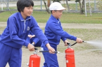 2017年4月18日 11時47分 17日(月)に、地域の消防団、消防署との合同避難訓練を実施しました。避難するまでは例年通りの避難訓練でしたが、その後、サイレンとともに消防署や消防団の方が校庭で消火活動を実施しました。あまり消火活動など見ていない子ども達にとっては、よい学習になりました。事務の先生は、119番への通報訓練も実施しました。