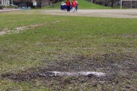 2017年4月21日 11時20分 校庭に除雪機でうずたかく積もっていた最後の雪が、いよいよ今日なくなりそうです。春本番間近です。さくらも開花し始めました。苗床づくりの準備も始まりました。