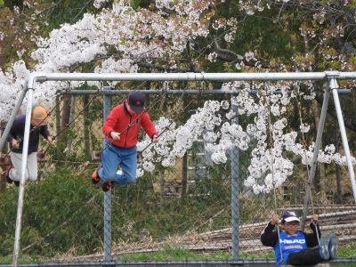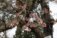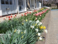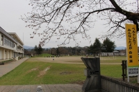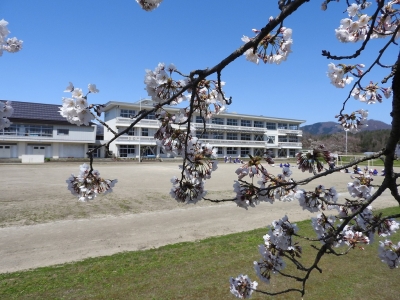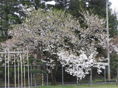 2017年5月1日 15時13分 校庭の桜も散り終わろうとしていますが、地面に近い桜の枝部分は、今が満開…そんな桜もあります。最後まで残雪が残