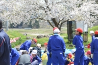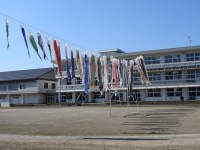 2017年4月24日 16時23分 今日の晴天に恵まれて、さくらも一気に開花し、七分咲きぐらいになりました。校庭には、鯉のぼりも泳ぎはじめて「春爛漫」です。