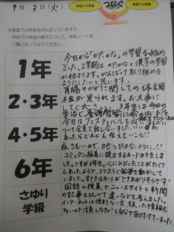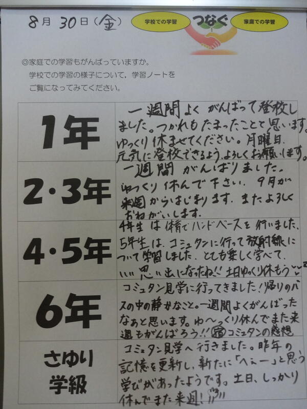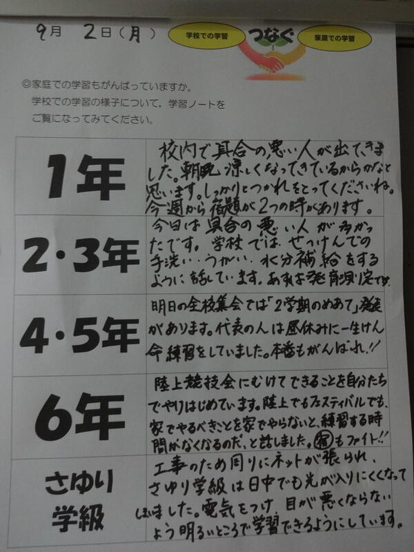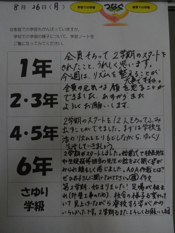 保護者の皆様、2学期も、どうぞよろしくお願いいたします。