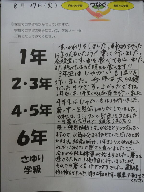 8/27 学習をつなぐ 陸上練習 1年生すいか