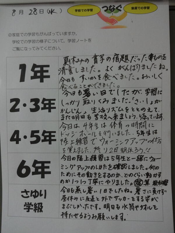 学校生活のリズムを取り戻し、2学期も、仲よくたくましく元気に過ごしましょう!