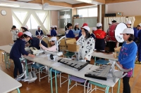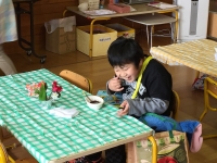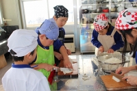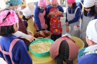 2016年1月14日 10時22分 生活科の授業です。始めに2年生が団子の下準備を行いました。次に1,2年生がいっしょに団子を丸めて団子さしを行いました。