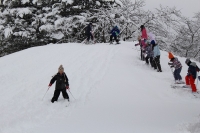 2016年1月25日 17時07分 2月12日のスキー教室に向けて、校庭でのスキー練習が始まりました。新雪なので、5,6年生が最初に雪を踏み固めました。3年生も一緒に参加しましたが、スキーの裏に雪がべったりくっついてしまって(ぼっこがついた)、ちょっと心配になりました。最近のスキーでも、ワックスは必要ですね。