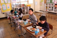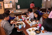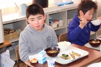 2016年1月26日 12時49分 キムチを試食しました。今日の給食の時間にいっしょに食べました。先に試食させていただきましたが、今まで店で購入したどのキムチよりおいしかったです。実際につくった子ども達は、もっともっとおいしかったと思います。