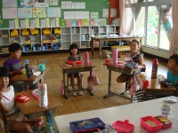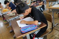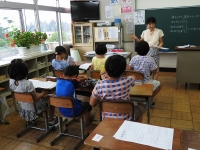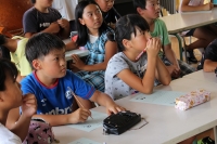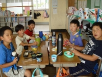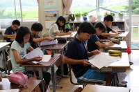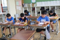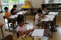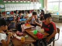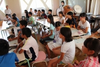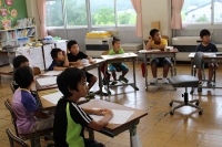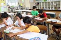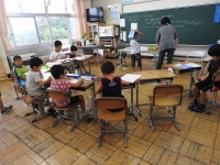 2015年7月23日 12時33分 21日、22日と猛暑が続いた夏休みですが、23日から学習支援が始まりました。雨が降ってちょっとだけ過ごしやすくなったので、登校したこどもたちも一生懸命でした。