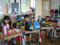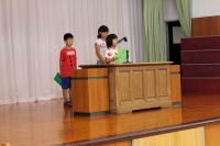 2015年7月17日 13時05分 明日から楽しい夏休みです。今日17日は、第1学期の終業式を行いました。3人の児童のめあての発表の後、夏休み中の注意事項を生徒指導担当の先生から真剣にお話を聞きました。8月25日には、また元気に登校してほしいです。