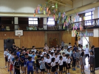 2015年7月7日 10時14分 朝の活動の時間を利用して、七夕集会を実施しました。例年のことながら梅雨の間の