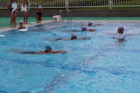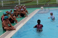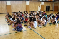 2015年7月16日 08時27分 15日には、水泳連盟の講師の先生をお迎えして、5,6年生が泳法指導を受けました。クロールの基本と平泳ぎを教えていただきました。平泳ぎのカエル足がとても難しくて、どうしてもあおり足になってしまいます。今シーズンで本物のカエルは何人誕生するのでしょうか。