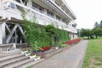 員室、印刷室、校長室前には、見事な緑のカーテンができました。ちょっとだけ、涼しく感じます。
