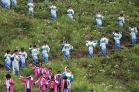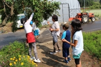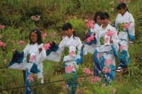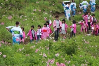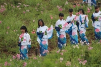 2015年6月9日 09時32分 6月6日(土),満開のひめさゆりの花々の中で、放課後子ども教室に通う子どもたちを中心に、ひめさゆり踊り