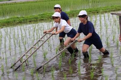 2015年6月19日 17時52分 6月18日、学校田の2回目の除草を行いました。支援員の山口さんの指導を受けながら、5,6年生全員で最後までやり抜きました。えらい!!!