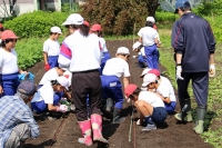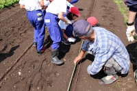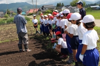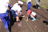 2015年6月11日 08時47分 6月10日(水)、学校農園にて3,4年生が枝豆を植えました。農業支援員の岩下さんの説
