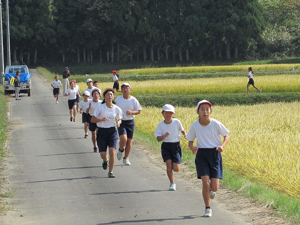 今日から、校内マラソン記録会(10月9日)の朝の練習が始まりました。各学年で円陣を作って準備運動から始まり、一人一人自己ベストをめざしてがんばっています。保護者のみなさんの当日の応援お願いいたします。