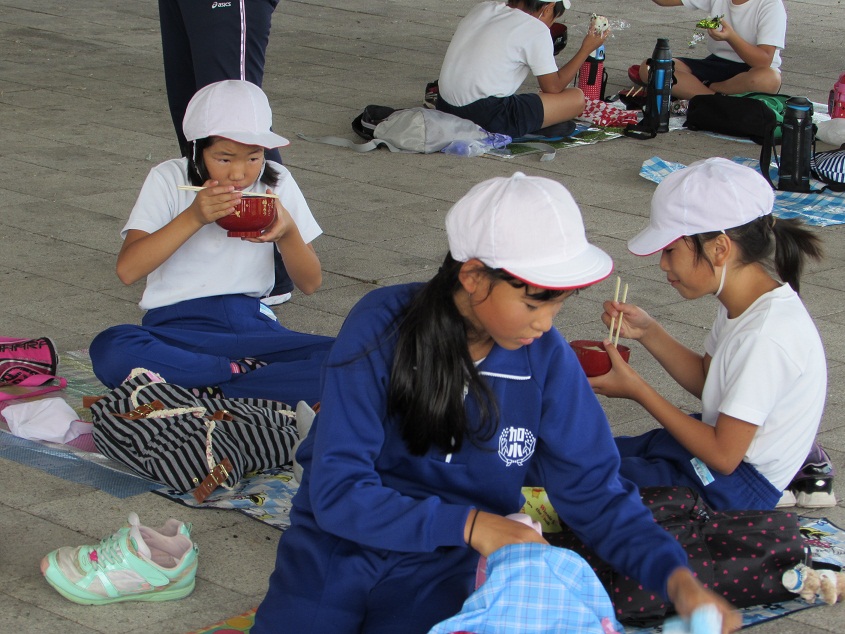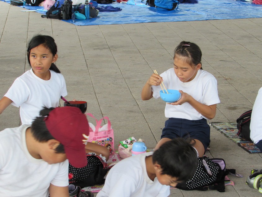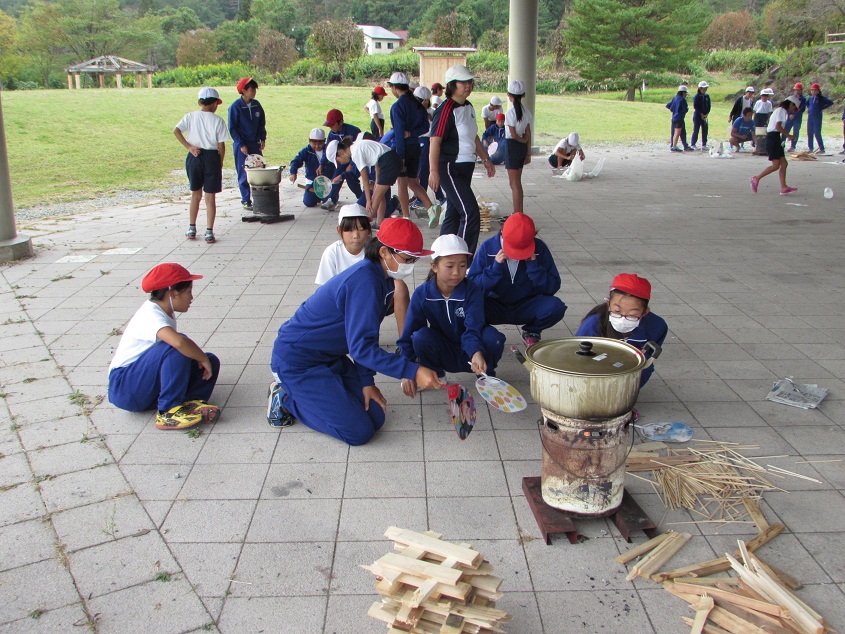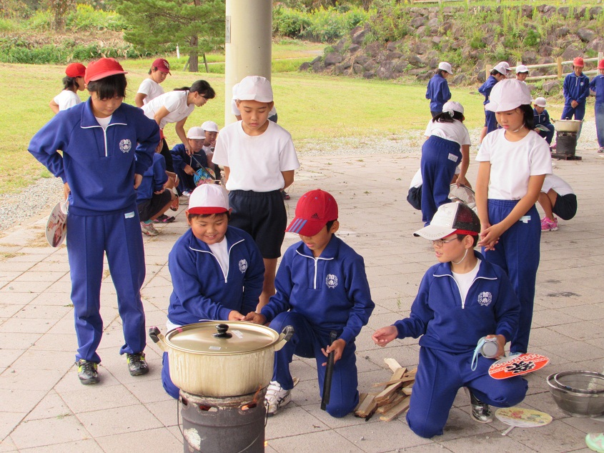 2014年10月3日 15時11分今日、秋の遠足(芋煮会)が六角堂で行われました。さゆり班ごとに分かれて学校を出発し、沿道の秋の草花を楽しみながら六角堂をめざしました。天候がとても気になりましたが、晴天のもと1~3年生は周辺の芝生で思いっきり遊べました。4~6年生は早速に芋煮の準備をしていました。お昼には各班の芋煮ができあがり、アツアツの芋煮を堪能していました。締めはカレーうどんにしている班や雑炊を作る班などおいしくいただきました。