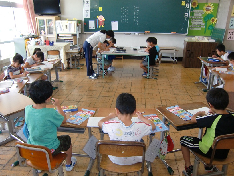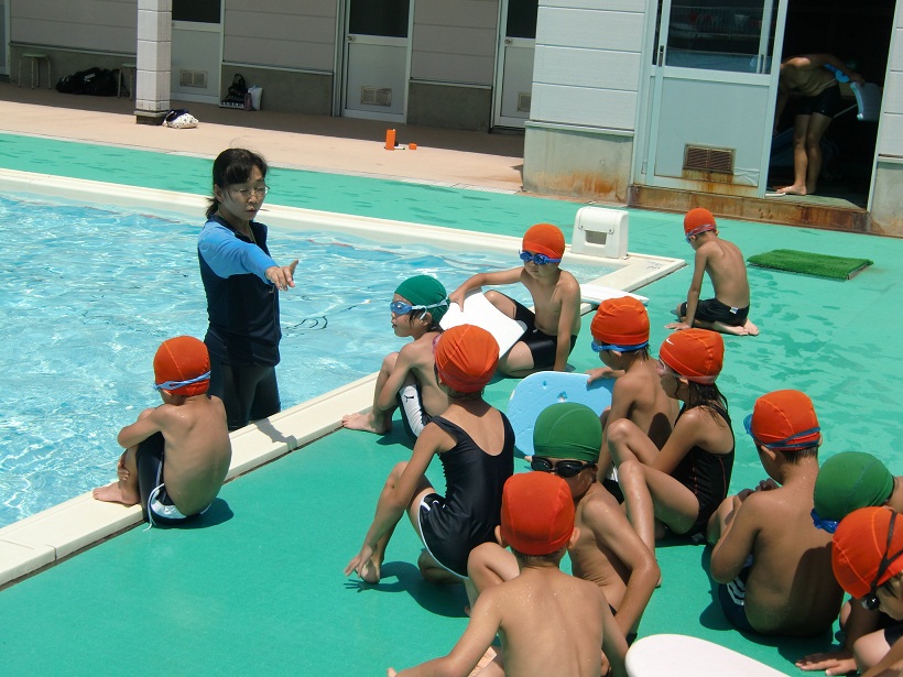 今日から、夏休み学習支援・水泳指導が始まりました。8:30~10:15までは学習支援、10:30~は水泳指導になります。学習支援・水泳指導ともに希望の子ども達対象です。子ども達一人一人学習プリントの課題や夏休みの課題に真剣に取り組んでいました。学習の後の水泳指導では、ビート板を使ってのバタ足・息継ぎの練習をコース別に行いました。
