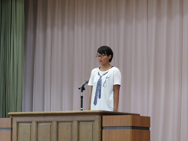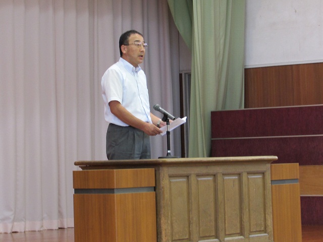 2校時に第1学期終業式がありました。学校長から1学期の反省とワールドカップ「ブラジル大会」で話題になった日本人サポーターの「ゴミ拾い」の話からマナーの大切さについてお話しがありました。
