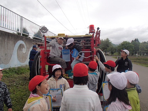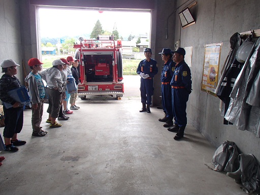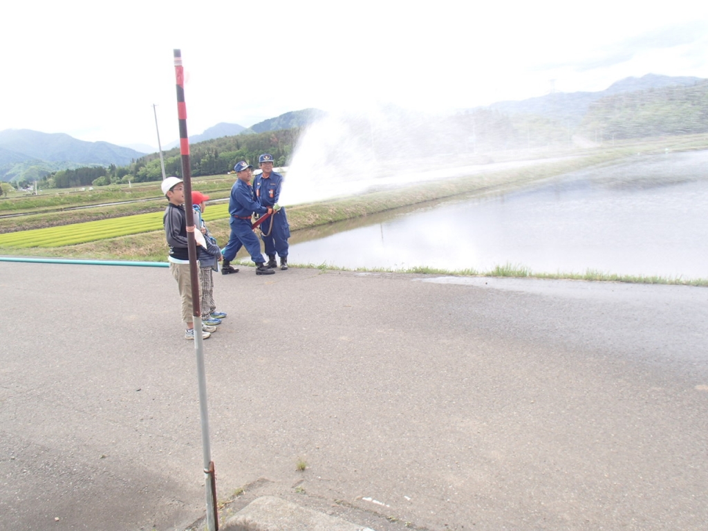 2014年5月23日 09時56分 昨日、4年生社会科授業で地域消防の学習をしました。熱塩加納支所の消防担当の方や地域消防団員の3名の方が、子ども達に地域消防の重要性と火事は大切な命や財産を失ってしまう恐ろしいことだということを教えていただきました。お忙しい中、消防団員の方は子ども達に丁寧に説明していただきました。屯所の中の見学や消防服の試着、消防車の試乗と放水訓練の様子を見せていただきました。本当にありがとうございました。