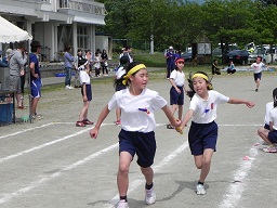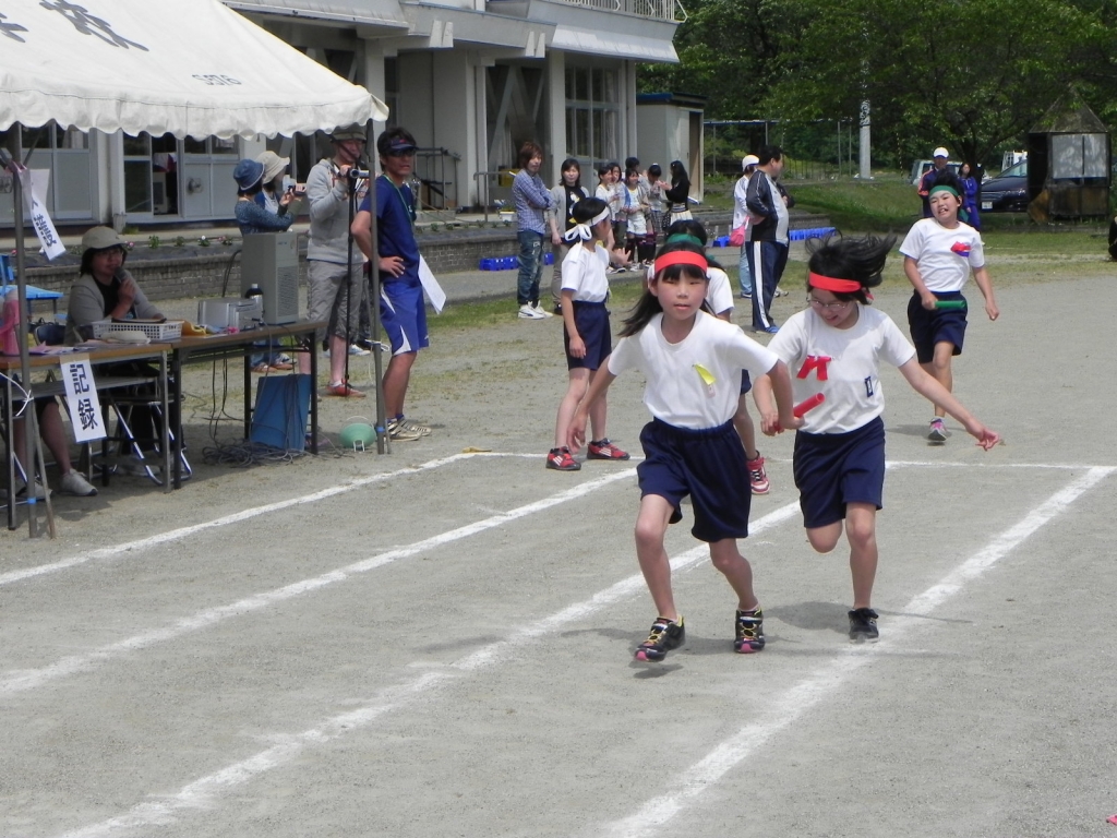 絶好の天気の中、4年生の「勝つんだぞ!!協力してこそ 運動会」のスローガンのもと力を合わせて立派なそして見に来られた人に感動を与える運動会が無事に終了しました。プログラム最後は、全校リレーでした。紅白抜きつ抜かれつのデッドヒートで見に来られた保護者の皆さんや地域の皆さんに迫力の走りを見せることができました。全校リレーの結果は紅が勝利し、203対192点て総合優勝は今年もわずか11点差で紅が優勝しました。
