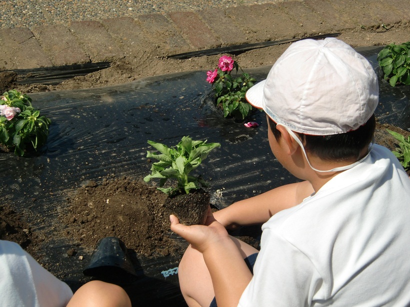 朝の時間に全校生で花壇の苗を植えました。それぞれの学年でペチュニア・ベゴニア・サルビア等を植えました。今年も地域の方からマリーゴールドの苗を100本いただきました。丹精込めて作られた苗を大切に育て、植えられたそれぞれの花々はこれから学校の子ども達や加納小学校へ来られた方々を楽しませてくれることでしょう。