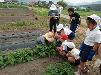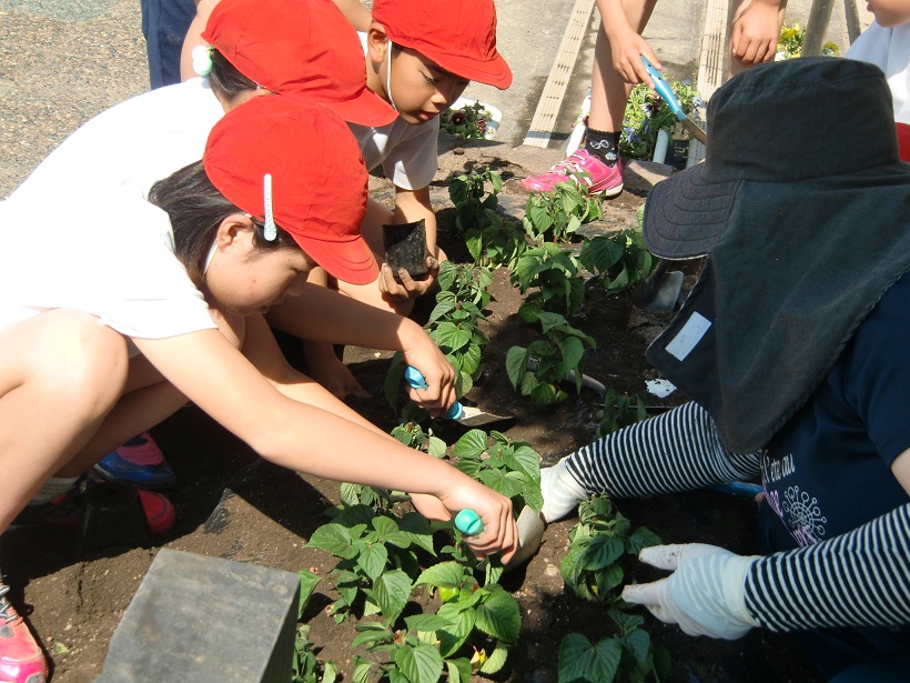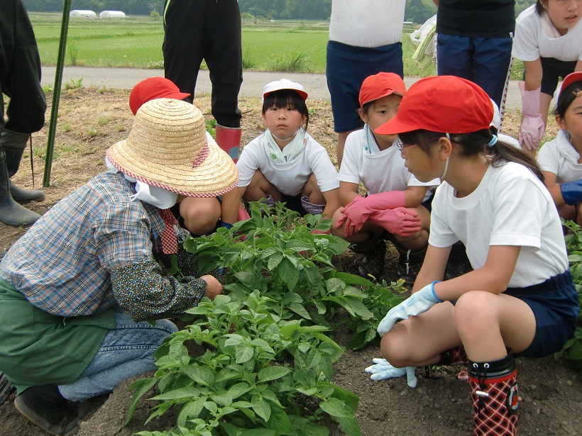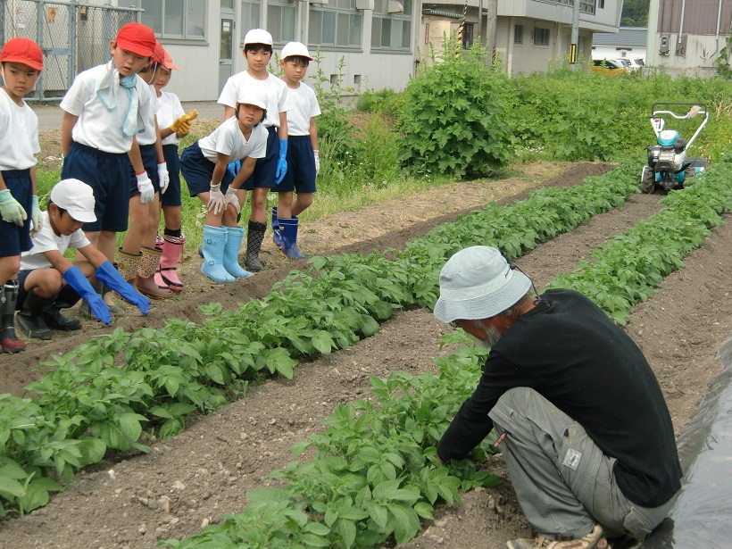 今日1.2校時の3.4年生の農業科は、ジャガイモの芽の間引きと枝豆の種まきをしました。2名の農業科支援員の方の丁寧なご指導により、上手に間引き作業と種まきを終了することができました。この後、土寄せや子ども達の手による害虫駆除を行います。7月の末休み前には、どちらも収穫の時期をむかえます。