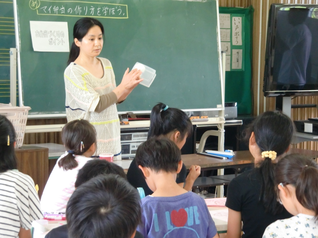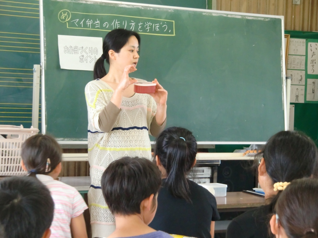2014年6月3日 14時20分 5,6年生の5時間目は、中学校の栄養士の先生を招いて「マイ弁当の作り方を学ぼう」の授業がありました。弁当箱の大きさや栄養、おかずが偏らない工夫など具体的にお話し下さいました。加納小学校も1年間で3回、学期に1回「マイ弁当」の日があります。お子さんと一緒にぜひ「マイ弁当」の日はチャレンジしてみて下さい。