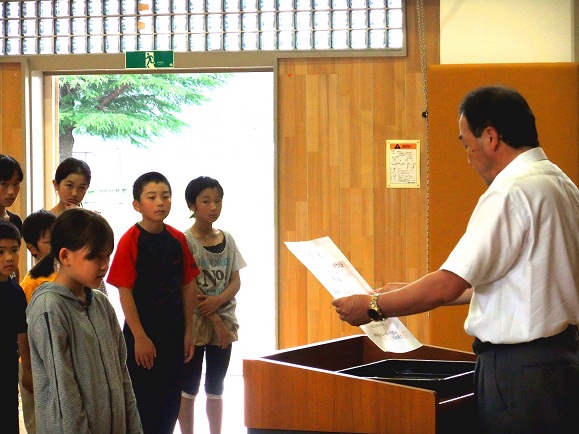 全校朝の会で、喜多方バレーボールスポーツ少年団で選手として、がんばっている5年生を表彰しました。全会津の大会で見事優勝し、県大会に出場する予定です。ますます頑張ってほしいと思います。