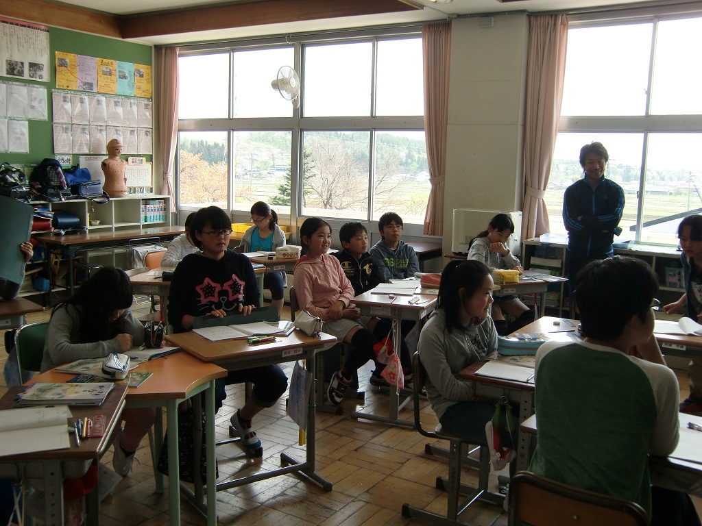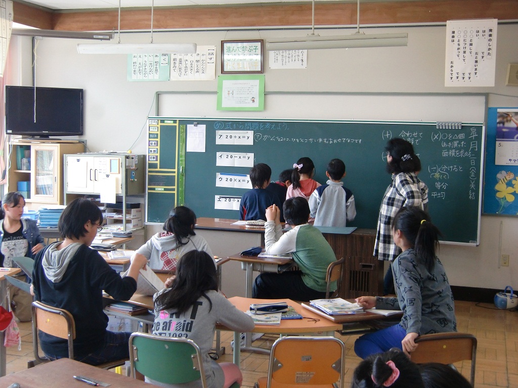 2014年5月2日 12時31分 今日から、熱塩小学校の6年生との交流授業が始まりました。加納小と合わせて19名です。交流授業とは熱塩小・加納小の2校の6年生が一緒に授業を通して交流を深め、より充実した修学旅行を行うためのものです。今日の3校時は「学級活動」で修学旅行のスローガンを決めました。4校時は算数の授業です。授業終了後は一緒に給食を食べ、休み時間も一緒に遊びます。次回は、加納小の6年生が熱塩小学校へ行って一緒に授業をします。
