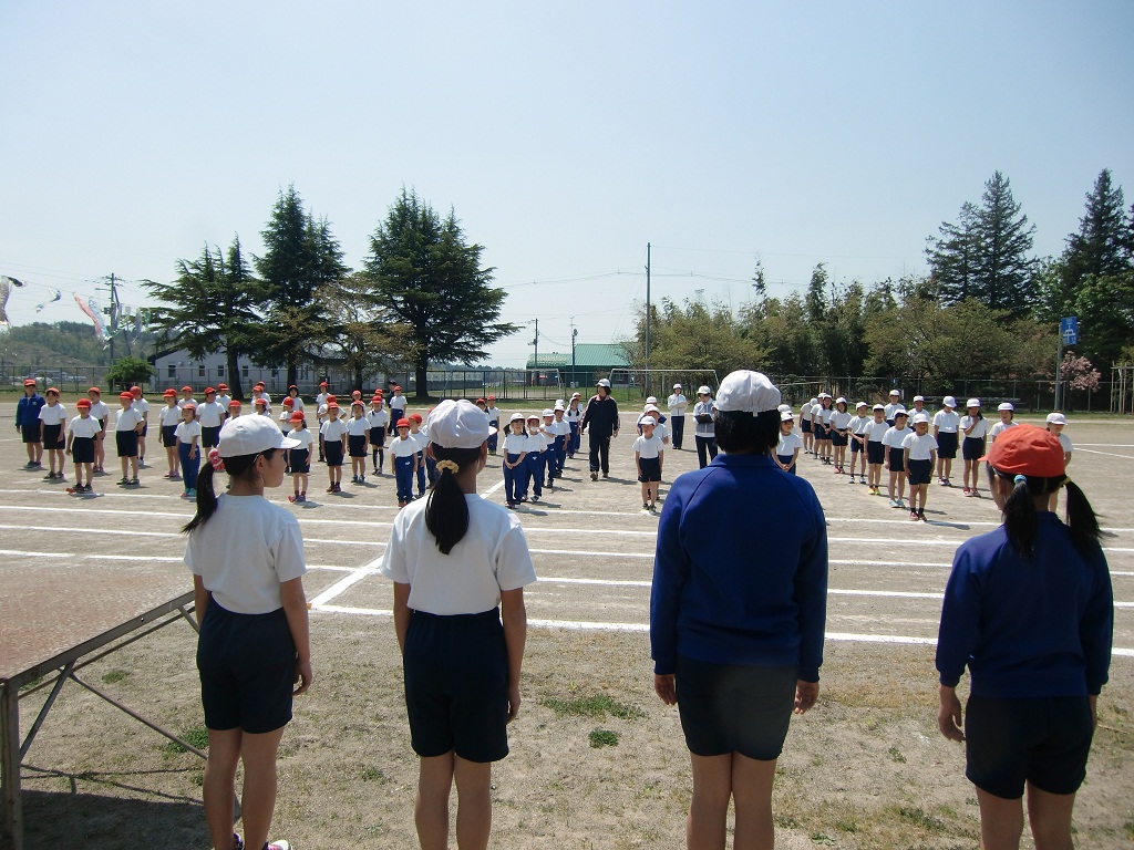 連休が終わり、晴天のもと今日から本格的な運動会の練習が始まりました。開会式、閉会式の練習です。入場行進、開会の言葉、運動会の歌、ラジオ体操、成績発表など初めての練習でしたが、元気いっぱいの演技ができました。